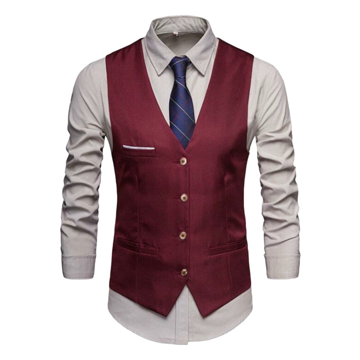 Men's Suit Vest: Do not wear it crumpled; unbutton before sitting to avoid deformation. Match with appropriate shirts and trousers, and avoid overstuffing pockets. Men's Dress Trousers: Hang upside down or on a trouser hanger to keep the leg shape straight. Avoid dragging the hem; iron at low temperature if wrinkled. All items should be stored in a dry, well-ventilated place to extend their service life.