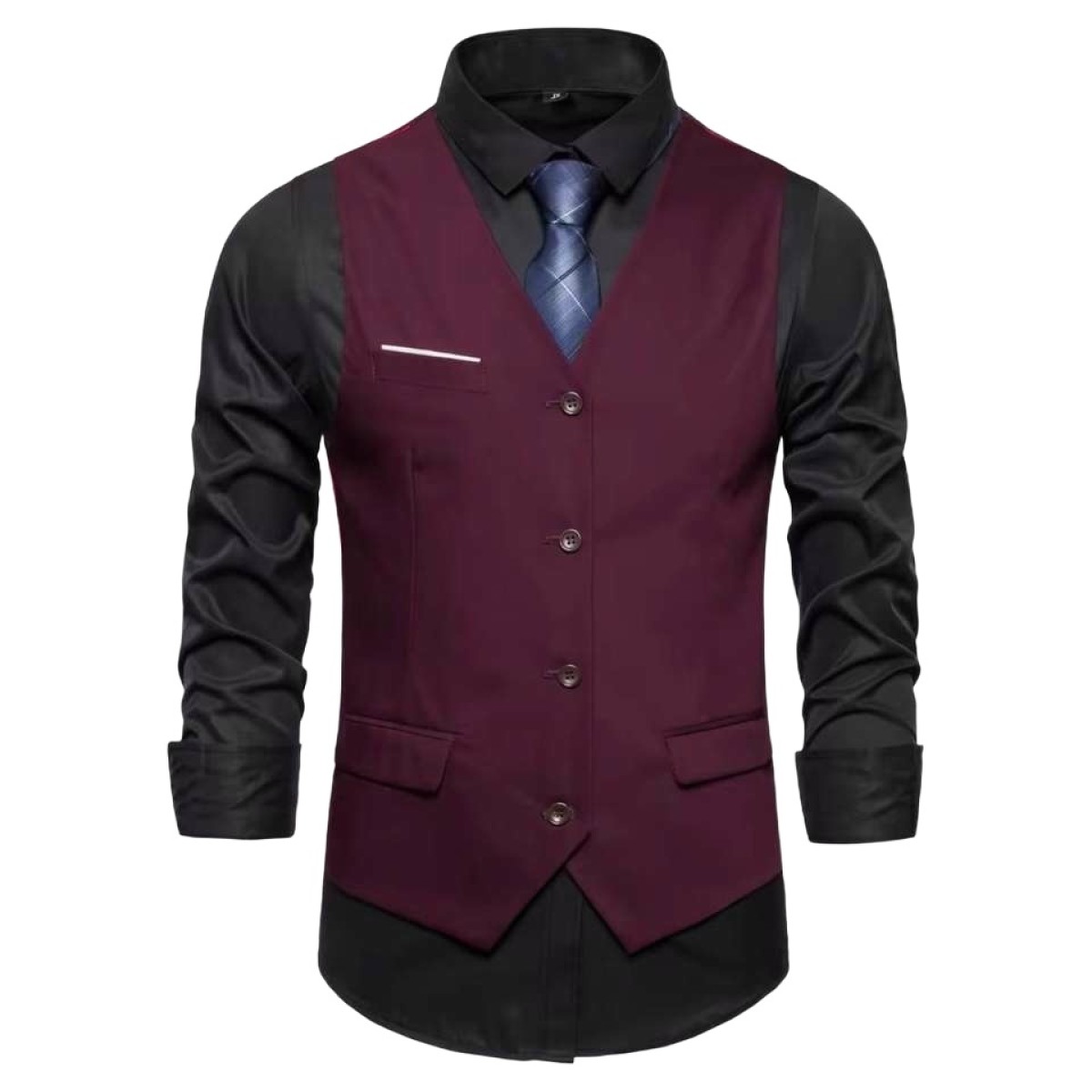 Men's Suit Vest: Do not wear it crumpled; unbutton before sitting to avoid deformation. Match with appropriate shirts and trousers, and avoid overstuffing pockets. Men's Dress Trousers: Hang upside down or on a trouser hanger to keep the leg shape straight. Avoid dragging the hem; iron at low temperature if wrinkled. All items should be stored in a dry, well-ventilated place to extend their service life.